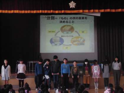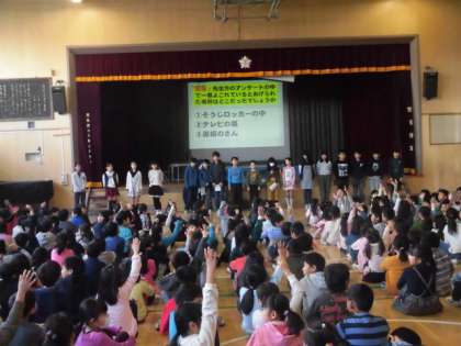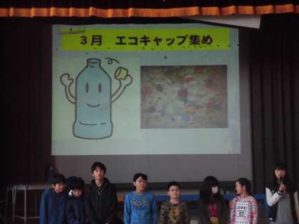 エコ・美化委員会は、掃除の時間に主事さんのお手伝いをした経験から「分別」の大切さ、教室の汚れの多い場所調べから、掃除のポイントと報告してくれました。「エコキャップ」の回収についての呼びかけもしてくれました。エコ・美化委員会からの報告をもとに、気持ちのよい武蔵丘小学校にしていきましょう。
