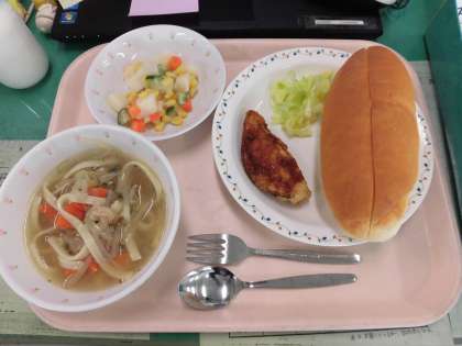 今日の給食は、*フィッシュサンド *マセドアンサラダ *ヌードルサラダ です。