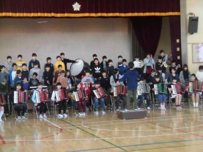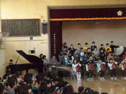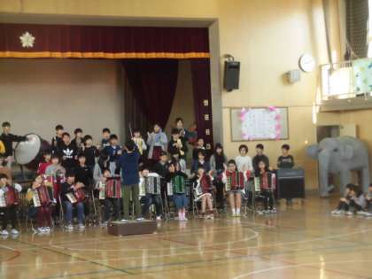 6年生からは、在校生に「情熱大陸」の合奏のプレゼント。6年生の迫力のある演奏を大き手拍子でみんなで応援。アンコールにも応えてもらいました。6年生との生活も残り少なくなりました。6日(火)には、なかよし班での「お別れ給食」もあります。楽しく過ごして6年生との思い出をつくりましょう。