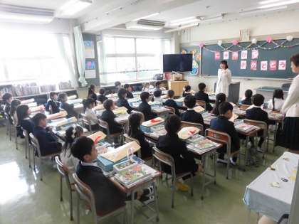入学式の後は、教室で先制の話を聞いたり、体育館で集合写真を撮りました。何枚も写真を撮られてちょっとびっくり。初めての小学校での1日。少し疲れたようです。2日間ゆっくり休んで月曜日から、また元気に学校にきましょう。