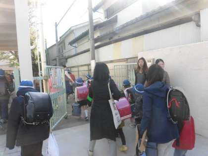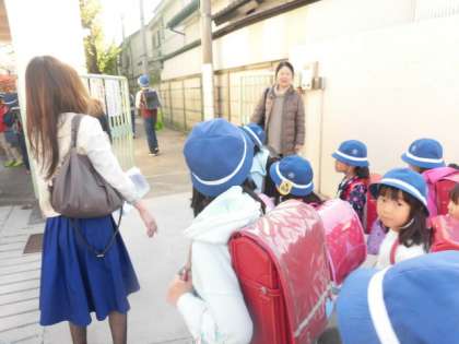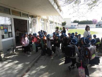 6日の入学式には、お家の方と一緒に登校した1年生。今日は、みんなで登校です。地域はんのお母さんたちと一緒に登校した子もいます。ご協力ありがとうございました。みんな元気に登校して、大きな声で「おはようございます」が言えました。