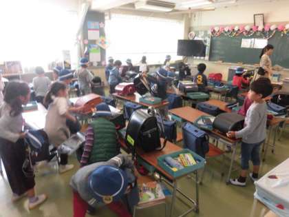 1年生になって初めての土曜日授業。土曜に授業があるには毎月1回です。今週は6日間、1年生も学校に通ういました。朝の教室には、6年生がいてお世話をしてくれています。新しいことも多くて今週は疲れたと思います。明日はゆっくり休んで月曜日も元気に登校しましょう。