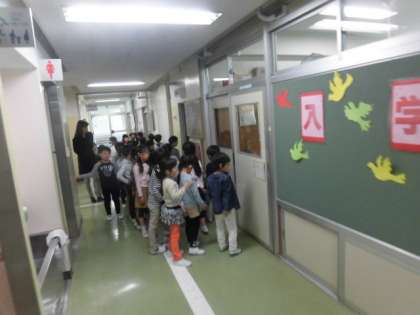1年生が、先生と一緒に保健室や職員室、校長室などのお部屋を見に行きました。友達と手をつないで、先生のお話もしっかりと聞いてお部屋を見て回りました。4月の終わりには、2年生がもっと詳しく学校のことを教えてくれます。楽しみに待っていましょう。