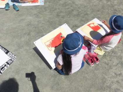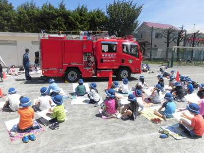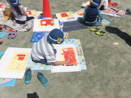 2年生の後は、1年生です。2年生より小さい紙いっぱいに大きく消防車をかきました。消防署の人や先生方にもほめられながら楽しくかきました。とても楽しい写生会になりました。ありがとうございました。