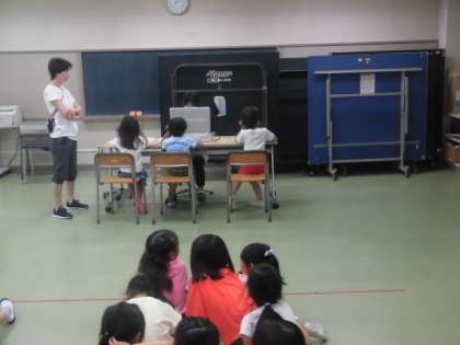 初めての聴力検査。説明をしっかりと聞いてからはじめます。小さな音もしっかりと聞いてボタンを押します。待っている人も静かに待っています。