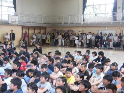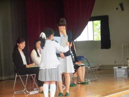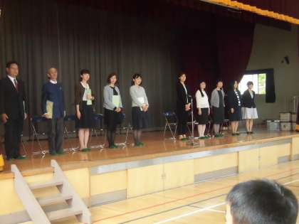 3月までお世話になった先生方、主事さん方が久しぶりに学校にお見えになりました。今日は離任式、たくさんの保護者の方も一緒にお世話になった方へ感謝の気持ちを表しました。代表の友達のお手紙もしっかりと聞いて、先生方や主事さんのお話も静かに真剣に聞きました。お別れすることは寂しいですが、次お会いするときには、もっと成長した姿をお見せできるようがんばっていきましょう。先生方、主事さん方本当にお世話になりました。