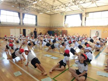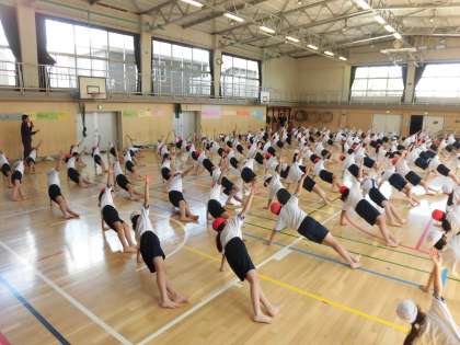 運動会に向けて、5・6年生合同組体操の練習をしています。