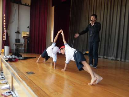 今日は1つ1つの技を丁寧におさらいし、一人技の質を高めていきました。また、4つの二人技にチャレンジしました。
