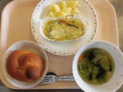 黒砂糖パン・魚のマヨネーズ焼き・粉ふきいも・野菜のスープ煮
