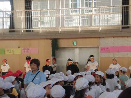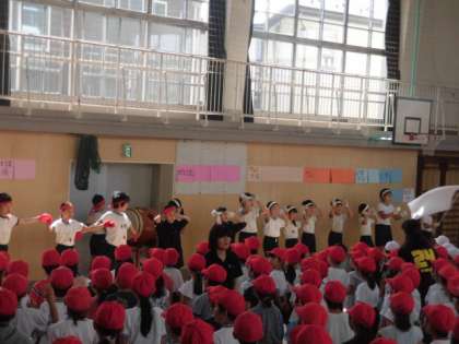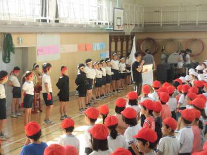 今日の音楽集会は、体育館に紅白で並んで、「運動会の歌」と応援合戦の時の「ゴーゴーゴー」を元気いっぱいに歌いました。教室から1年生が歌っているのが聞こえてきていましたが、今日は体育館いっぱいに響く大きな声で歌っていました。応援団長の自己紹介もあり運動会が近づいてきたのが感じられる音楽集会でした。