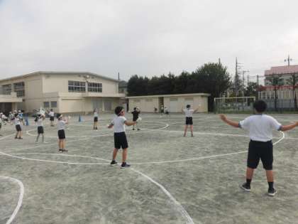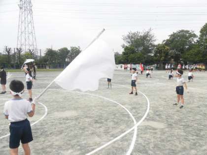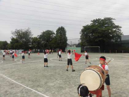 応援団の朝練習もいよいよ校庭での練習です。体育館よりも大きな声が必要です。短い時間ですが集中して練習に取り組んでいます。