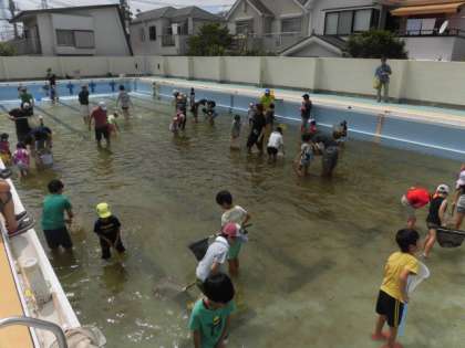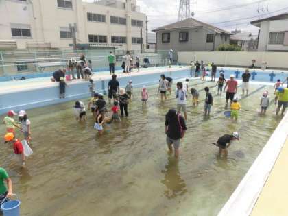 毎年、学校のプールで行っている「やご取り」。今年もたくさんの子どもたち、保護者のみなさまにお集まりいただきましたが、今年は残念ながらやごがいませんでした。とても残念でした。来年は、いつもの年のようにたくさん取れることを祈っています。