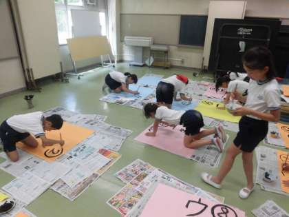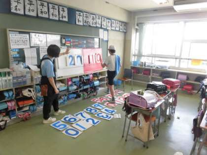 6校時は、運動会の係活動です。校舎の中では、プロぐグラムを書いたり、音楽の練習や採点の仕方の確認、大道具の準備の仕方、放送の仕方などを確認しました。2回目の6年生の様子を見ながら5年生も頑張って係活動に意欲的に取り組みました。