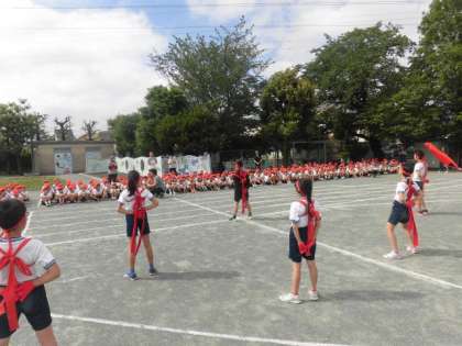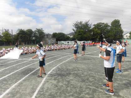 天気も回復し、2回目の全校練習です。最初は、午後の応援の練習です。応援団の掛け声に合わせて大きな声で応援ができました。