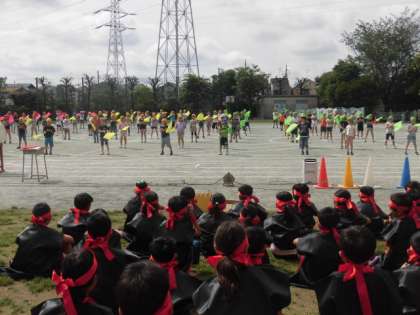 3・4年生は、自分たちの演技を披露しあいました。手拍子したり、掛け声を合わせたり、初めて見る他学年の演技は刺激になったようです。明日の演技は今日以上になっているでしょう。