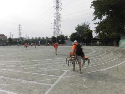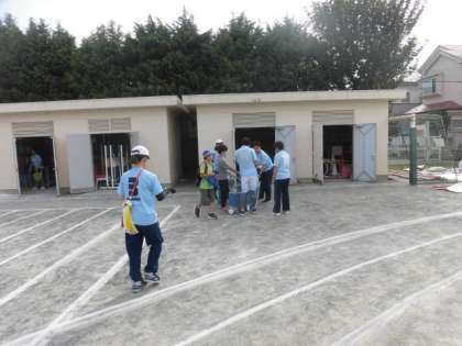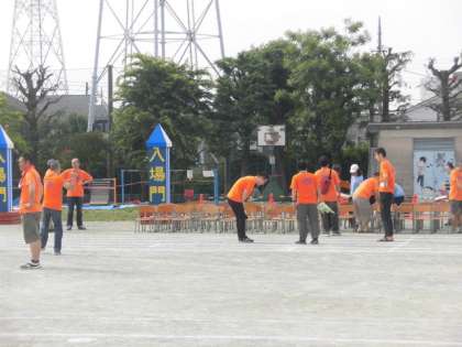よい天気の中で運動会ができそうです。校庭では、教員、主事、おやじの会の方々が最後の準備をしています。ありがとうございます。