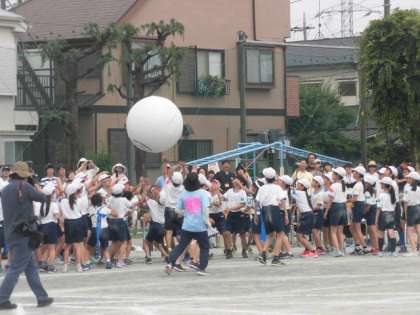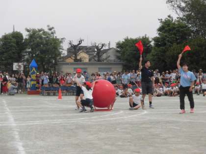 勝利のかかった最後の「大玉送り」初めて行う1年生も最後となる6年生も協力して取り組みました。1回戦は、珍しい引き分け。勝負のかかった2回戦は赤が勝利し、優勝も赤となりました。赤も白も最後まで頑張りました。