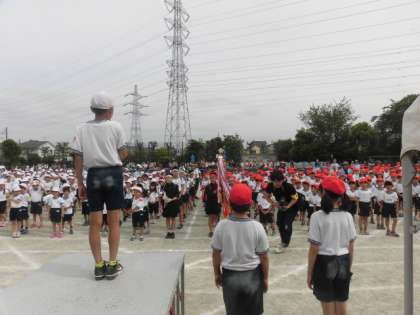 最後の競技大玉送りが終わり、楽しかった運動会もあと少し、終わりの運動をして閉会式です。今年は天候にも恵まれ、急激な暑さがなかった分、最後まで子どもたちは元気に取り組むことができました。赤の優勝で幕を閉じた運動会でしたが、スローガンのとおり「一人一人が強い心をもって輝いた」1日でした。これまでの練習で頑張ったこと、今日の運動会で頑張ったことを自信にして、これからの学校生活を過ごしていきましょう。みんなよく頑張りました。保護者の皆様、地域の皆様最後までご声援ありがとうござました。