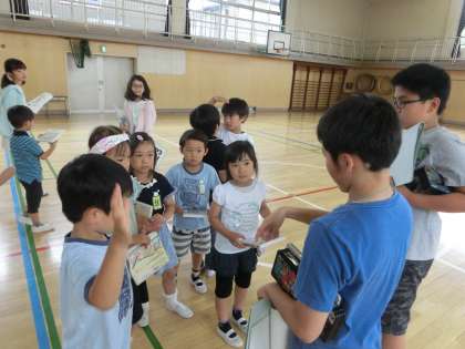 今年度はじめてのなかよし班での顔合わせ活動がありました。今週からなかよし班でのあいさつ週間もスタートしました。6年生がリーダーとなって、各班ごとに自己紹介したり、1年生が名札を書くお手伝いをしたりしました。次のなかよし遊びも楽しみです。
