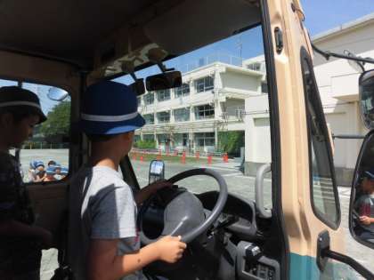 宅急便の業者の方に来ていただき、2年生が交通安全教室を行いました。1年生の時にも横断歩道の渡り方や道路の歩き方を警察の人から教えていただいてから1年。2年生になって行動範囲も広くなっている2年生には、自分で自分の身を守る大切さを教えていく必要があります。今日の交通安全教室では、実際に自動車の運転席に乗って、死角となって自分たちが見えないことがあることを実際に学びました。今日の学びを大切に交通事故に絶対にあわないようにしましょう。