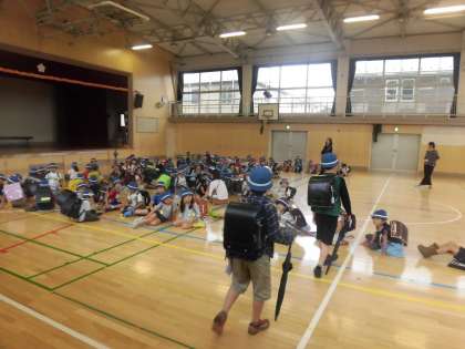 1年生も入って、今年度も地域班編成を行いました。体育館に集合した1年生をそれぞれの地域班の部屋に連れていき、自己紹介などをしました。朝の登校も一緒になることも多くあります。仲良くしていきましょう。