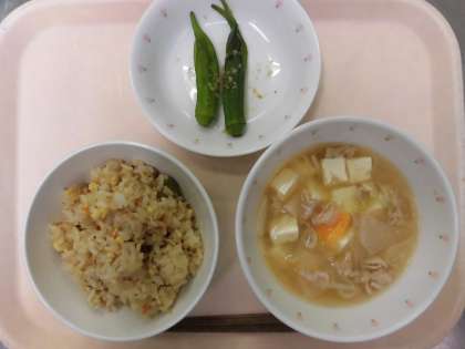 そぼろごはん・おくらのおかかあえ・とん汁