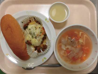 米粉パン・ムサカ・レンズ豆のスープ・レモンゼリー