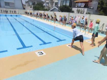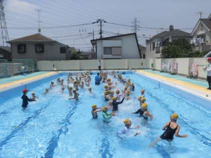 昨日に引き続いての良い天気。3年生が今年初めてのプールに入りました。気温は高く、プールの中の水もそんなに冷たくありませんが、シャワーの水はとっても冷たいようです。1年ぶりの冷たいシャワーを浴びて元気に泳いでいました。