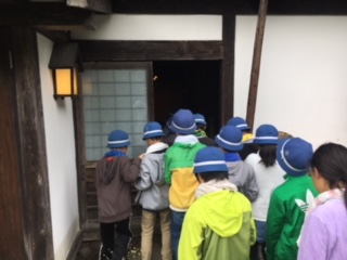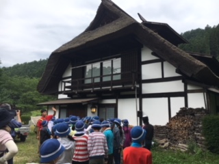 茅葺き屋根の古民家を見学しています。川場村でも少なくなった貴重な建物です。