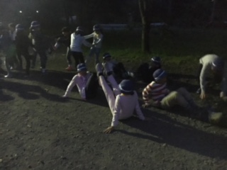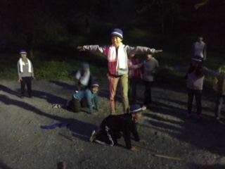 組体操で使ったゆずのリーズン、みんなで歌っているうちに、いつしか一人技、二人技がはじまりました。楽しかったキャンプファイヤーも終わり、この後は、入浴です。