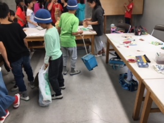 完成作品です。完成した人から片付けです。協力して使った部屋をきれいにします。作品は、家に持ち帰ります。楽しみに待っていてください。