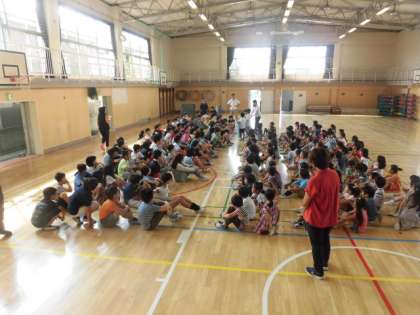 終業式が終わった体育館では、1学期、6年生にお世話になった1年生から6年生へのお礼の手紙が渡されました。4月6日に6年生に手を引かれて入学した1年生も6年生から色々なことを教わり成長しました。お手紙をもらった6年生がとても嬉しそうでした。6年生ありがとう。