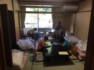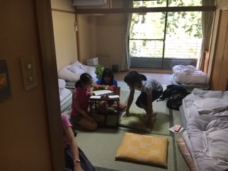 はやく宿舎に着いたので、入浴を16時からにはやめました。今日は1組が先です。2組は、ハガキを書いています。