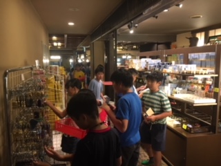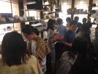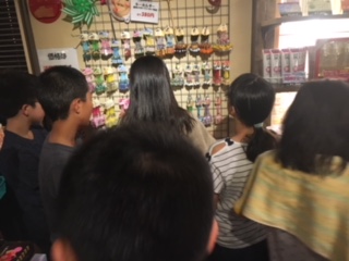 2組がおみやげを買っています。おみやげを買うのは、ここだけです。しっかり選んで買いましょう。おみやげ楽しみにしていてください。