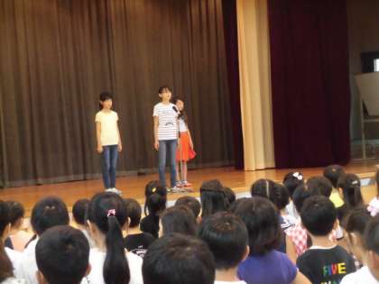 長かった夏休みが終わり、2学期が始まりました。始業式に体育館に集まった子どもたちはとてもしっかりと話がきけました。夏休みの成長を感じます。5年生の代表が2学期の抱負を力強く述べてくれました。新しい友達も迎え、2学期の良いスタートがきれました。充実した2学期にしていきましょう。