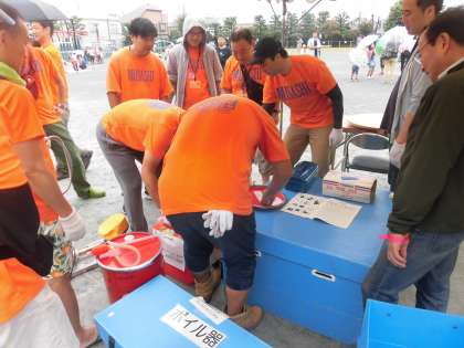 天気が心配でしたが、飯ごう炊さん会を実施しました。朝早くからおやじの会やお手伝いのお父さんがたくさん集まっていただき、ブロックやテントの準備等をしていただきました。開会式を行った後、かまどの作り方や飯ごうの炊き方などお説明を聞いてから各地域班ごとにカレー作りを行いました。