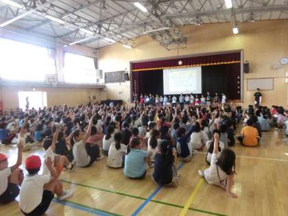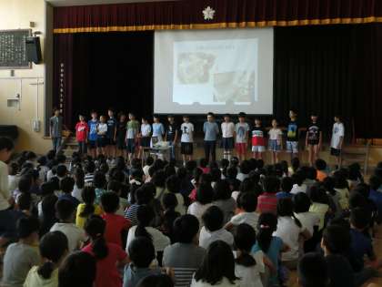 児童集会では、先日に引き続き、前期委員会報告がありました。今回は、エコ美化委員会・運動委員会・図書委員会でした。ムサシの子どもたちが、より快適な生活を送れるよう、3年生以上の代表委員会、その他5・6年生による委員会活動があります。