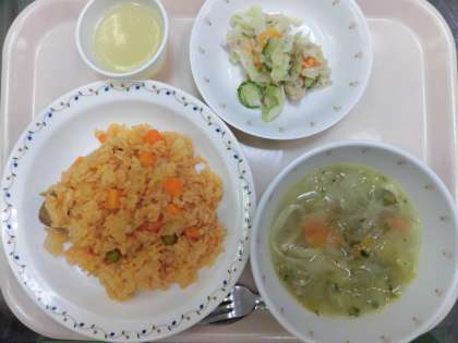チキンライス・ヌードルスープ・ツナサラダ・りんごゼリー