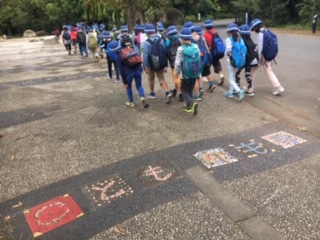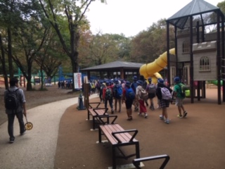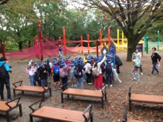 こどもの森に到着。西立川の入り口から1km以上歩きました。これから3、4年生合同のグループで遊びます。