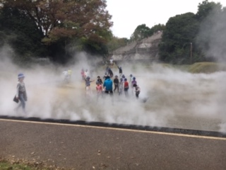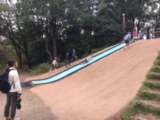雨が少し降ったので雲の海(ふわふわドーム)は、使用中止になってしまいましたが、ほかの遊具で楽しく遊んでいます。