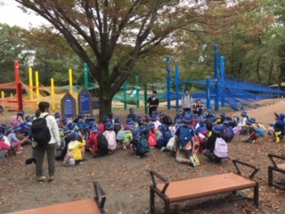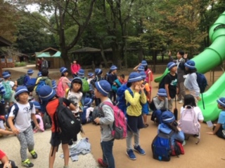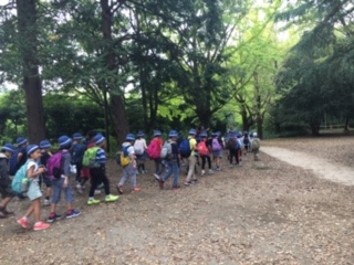 全部の班、無事に集合しました。これからみんなのはらっぱに移動してお弁当です。