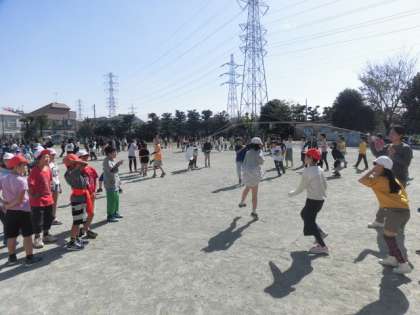 大繩に取り組むハッスルタイムは今日で最終です。良い天気の中、どの学級もたくさん跳べるよう頑張って取り組みました。