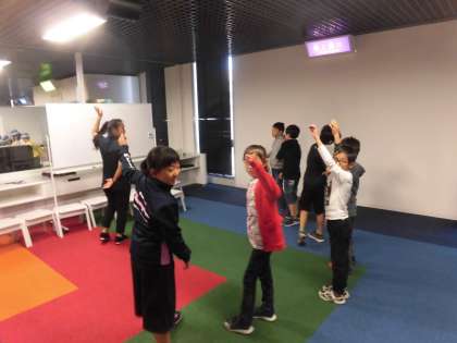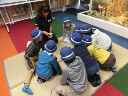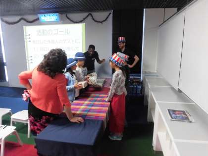 読み聞かせの後は、事前に「日本文化体験」「「異文化体験」「コミュニケーション」「英語で学ぶ世田谷」「歌と踊り」の5つのグループに分かれて、それぞれALTの先生と一緒に英語体験学習をしました。