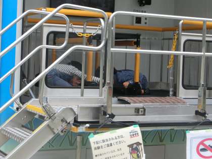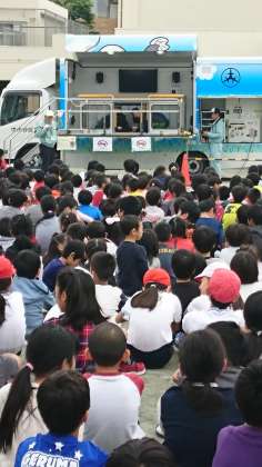 11時20分、大きな地震が発生、家庭科室から出火という想定で避難訓練を行いました。4年生は起震車の中で「震度7」の体験をしました。大きな地震が起こったときに、まずは自分の命を守る訓練です。