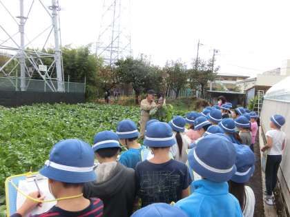 3・4時間目に3年生が学校の近くの「並木農園」さんに見学にいきました。畑でいろいろな作物を作って販売している並木さんに、農作物を作るときに大変なことや大切なことなどお話を聞きました。昔ながらの農機具やトラクターなども実際に使っているところを実演してくれました。とても貴重な体験ができました。並木さんご協力ありがとうございました。