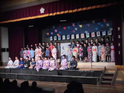 子どもたちが楽しみにしていた学芸会が始まりました。今日は、児童館賞日でした。子どもたちは、他の学年のたくさんの観客の前で堂々と演じていました。また、他の学年の演技を楽しく見て大きな拍手を送っていいました。初めての学芸会の1・2年生。大きな声で堂々と演じました。1年生「えんそくにいくんだ」2年生「じゅげむ」です。