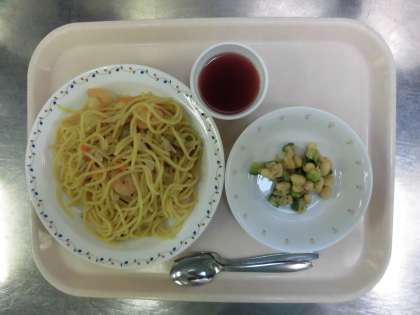 和風スパゲティ・ビーンズサラダ・ブドウゼリー