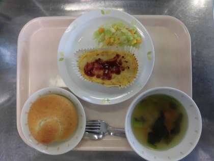 セサミパン・スペイン風オムレツ・コーンサラダ・コンソメスープ