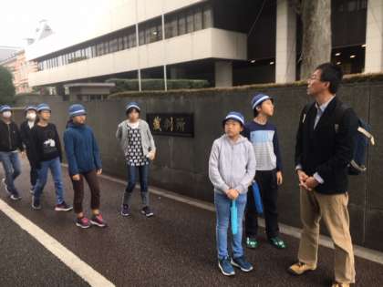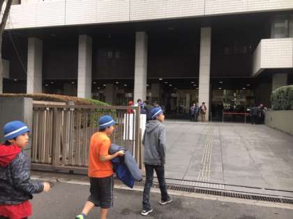 東京高裁裁判所に到着。ここでは、模擬裁判を体験します。写真撮影ができませんので、模擬裁判の様子は家でお聞きください。