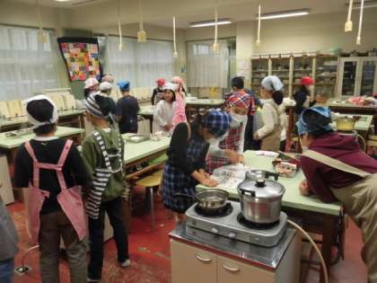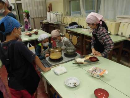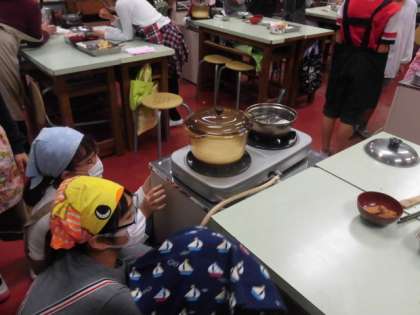 5年生が調理実習を行っています。今回の調理実習は、ごはんとみそ汁です。もうすぐ、冬休み。お家でも挑戦してるといいですね。